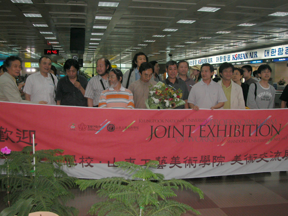 代表团一行于6月8日14点到达韩国大机场,以庆北大学学艺术学院卞遗福教授为首的师生在机场举行了热情的欢迎仪式。入驻琴湖饭店后受到了热情地接待与欢迎。