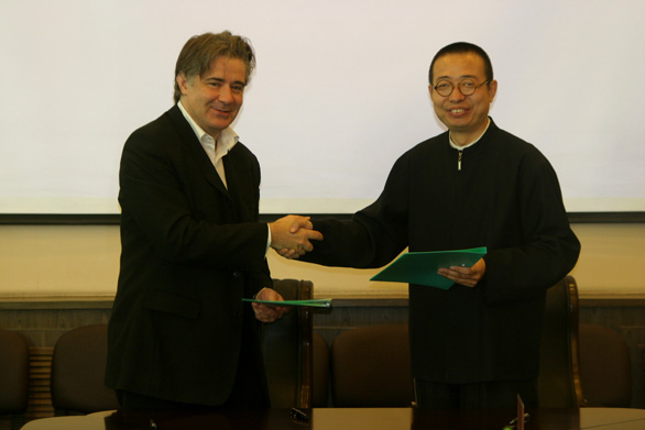 院长在第一会议室与法国南特高等设计学院院长格勒林教授就两校合作事宜达成初步合作意向,并签署合作协议。