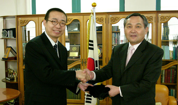 潘鲁生院长与庆北大学金达雄校长就学术合作事宜达成共识