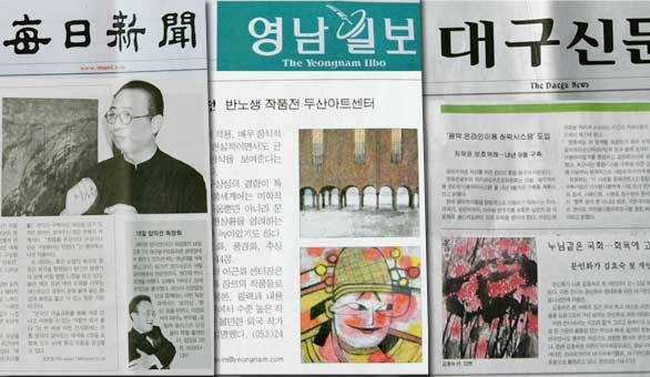 彩墨艺术展在韩国大邱市DUSAN ART CENTER举办。大邱市政府文化局、文化艺术会馆、文化艺术总联合会、美术家协会的有关领导及专家出席了开幕式,来自庆北大学、岭南大学、大邱大学、庆云大学、大庆大学及韩国美术界的同仁参观了展览。艺术大学的校长身体力行举办个人画展,在韩国引起极大反响,韩国主流媒体均对这次画展作了专题报道。