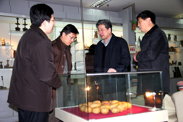 1月6日下午,国家发改委产业政策司副司长夏农一行及中国工艺美术协会艺术顾问朱培初来我院参观访问,党委书记于茂阳、老领导孙长林、张一民以及丁永源在学院第一会议室接待了夏农一行,并陪同参观了博物馆和孙长林艺术馆。