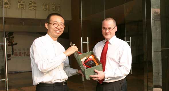 潘院长向大卫·泰勒先生介绍了我院有关城市文化建设的相关专业领域,表达了高校应为区域经济建设、为城市文化建设服务的观点。在潘院长的陪同下,大卫·泰勒一行先后参观了学院美术馆、孙长林艺术馆和中国民艺博物馆。大卫·泰勒先生对博大精深的东方文化赞叹不已,并欣然题词留念。