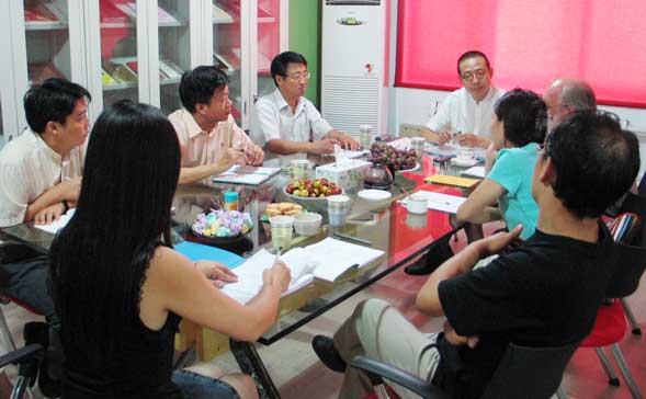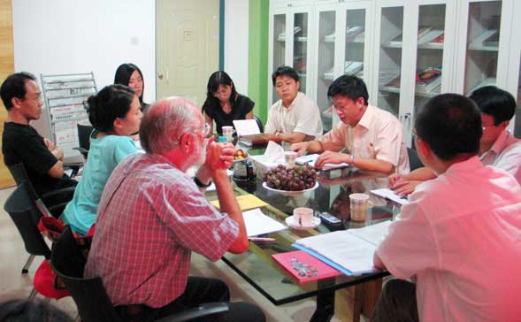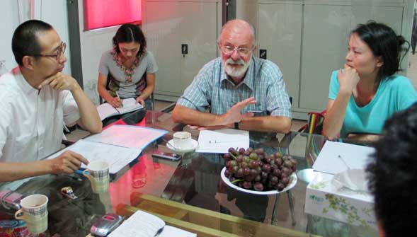 院长与罗伯特·雷顿先生在民艺研究所资料室举行了交流会议,南京师范大学美术系教授徐飚、教务处副处长