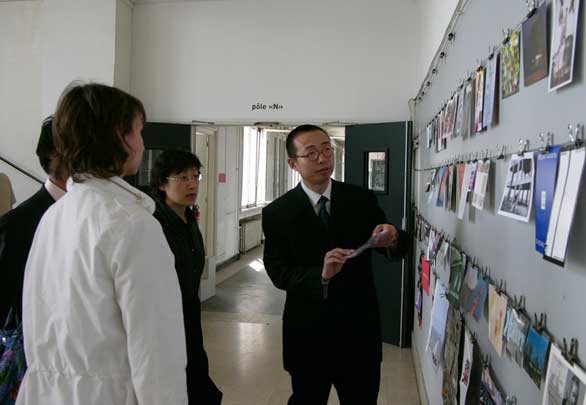 、副院长李新、科研处长胡希佳、教务处副处长王霞和外事办副主任康健访问了法国里昂国立美术学院。法国里昂国立美术学院院长叶维兹.罗伯特、外事处长埃斯特拉.娜贝阿特女士、尼克.凡斯提克教授接待了代表团一行。叶维兹.罗伯特院长向代表团介绍了里昂国立美术学院的有关情况。法国里昂国立美术学院创办于1756年,现设美术和造型设计两个专业,专门培养艺术家和创造者。学院作为“研究与实验”试验室,断然面向当代艺术现实, 以实现高水平职业化为办学目标。里昂国立美术学院是一所受国家认可并由里昂市政府管理的高等艺术教育机构,有资格颁发艺术与造型设计两个专业的国家文凭, 即:三年制的“造型艺术国家文凭(DNAP)”和五年制的“造型表现高等国家文凭(DNSEP)”。四年学生入学录取条件,由招生录取委员会对拥有“造型艺术国家文凭(DNAP)”或同等外国文凭(须经翻译并证明核对无误)的学生进行审核。候选人须向学院寄送一份填妥的报名表并附列所要求的各项附件。报名候选人将应召介绍自己的情况并接受招生录取委员会的审查与面谈。外国学生在与招生录取委员会见面时还必须参加一项法语笔试。教学组织艺术专业个人创造设计阶段(四、五年级)的教学旨在:1. 培养确立学生的独立思考和工作精神,以别具一格的姿态投身于当代艺术及其附属科目的开放性和多样化领域;2. 优化已获得的理论、技能和操作能力;3. 改善创作与程序、态度与方法;4. 确认对作品及其可见性条件的职业化要求以及对历史、哲学和社会的理智性认识。公共空间造型设计专业的学生以造型艺术家的身份进行个人创作设计。该专业优先注重关于城市及其空间构造的眼光和实践。学生制作完成的是摄像、装置作品,但他们构想的却是城市空间创造。参与该专业教学的还有设计师、画家、造型艺术家、建筑设计师、舞台装置设计师、诗人、理论家、舞蹈设计师等等。职业前景一般是艺术职业,从事造型设计等方面的工作。之后,在主人的陪同下,