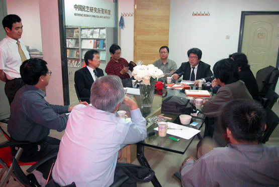 、继续教育学院副院长吕学海等与访问团成员在民艺所进行了友好会谈,就两校加强学术交流与合作等双方感兴趣的话题进行了交流。双方认为,可以通过作品展览、互派教师进修与互派学生学习等方式开展合作。双方还对互派教师与学生互访进修进行了细致磋商,认为可以先实现互派由教师带队的学生访学进修团以进一步促成双方实现人员互访与进修。