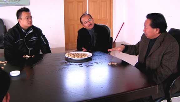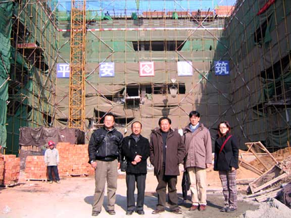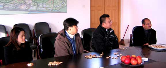 王秀存副院长向日本客人介绍了新西区建设工程的情况,引导他们观察了新校区的地形地貌、建设工地,组织指挥部有关人员与两位设计师进行了座谈交流。