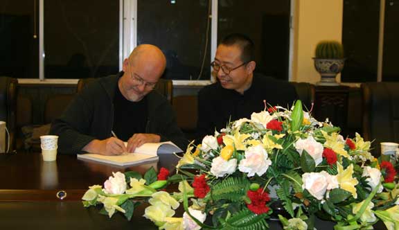 院长与卡里碧波先生就中国与外国的文化异同及艺术设计理念等方面进行了热情的座谈和交流,并互赠了各自的签名画册留念。
