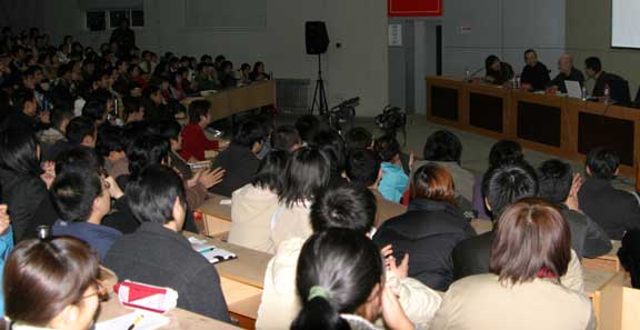 聘任仪式结束后,卡里•碧波先生在肖勇副教授的翻译下,结合自己的创作作品、创作经验,为我院师生进行了精彩的讲座。卡里•碧波先生特别建议大家,不要一味追逐流行,设计意味着用简单、直观的方式去反映现实,好的招贴应该简单、强烈、锐利。对于一名艺术家,最重要的是用心体验,不要仅仅为客户创作,平面设计师不能仅仅局限于招贴作品,要勇于尝试做各种各样的作品。卡里•碧波先生幽默、诙谐的语言,独到的设计见解,不时博得师生们热烈的掌声。
