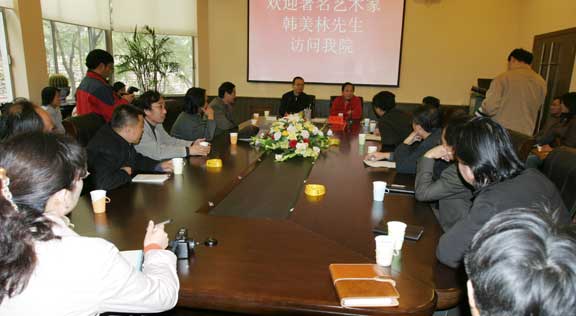 韩美林的艺术人生扎根于深厚的中国大地土壤,百折不回,上下求索,取得了令人瞩目的艺术成就。他同记者、教师、学生代表们就有关问题进行了充分交流。韩美林先生表达了艺术强调个性,不必拘泥于“什么法、什么式”,同时必须扎根民族传统等观点。他畅言快语、挥洒性情,显示出山东人的豪迈性格、岁月磨砺的人世沧桑以及艺术大家的独特气质。现场气氛热烈,不时爆发出畅快、爽朗的笑声。座谈结束后,韩美林与与会师生合影留念。