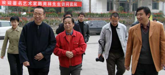院长、李新副院长,教务处、科研处等部门领导及众多师生热情欢迎韩美林先生的到来。