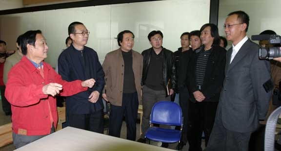在艺术设计重点学科装潢设计实验室,韩美林与同学们热情交谈,回答了学生的现场提问。韩美林简洁地阐释了设计与装饰和传统艺术的融合问题,强调了丰富的优秀民族传统文化资源在当代艺术创作中的重要价值。韩美林先生率真爽直的性格和对于艺术、人生的真知灼见感染了在场的每一位师生。