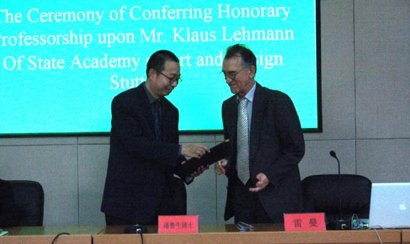 德国斯图加特美术学院前院长克劳斯.雷曼教授被聘为我院荣誉教授 [附图]