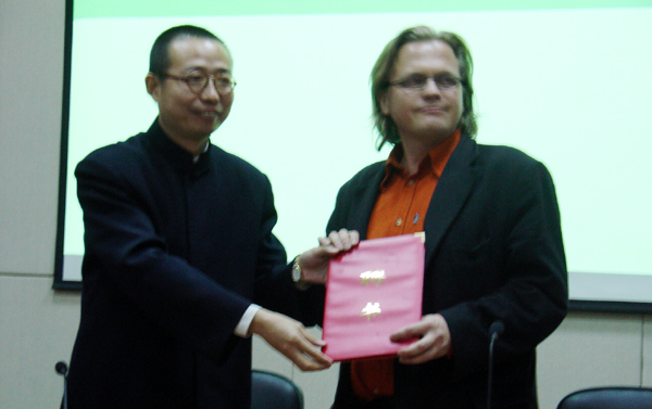 院长为Vesa教授颁发了聘书,并发表了热情洋溢的讲话。