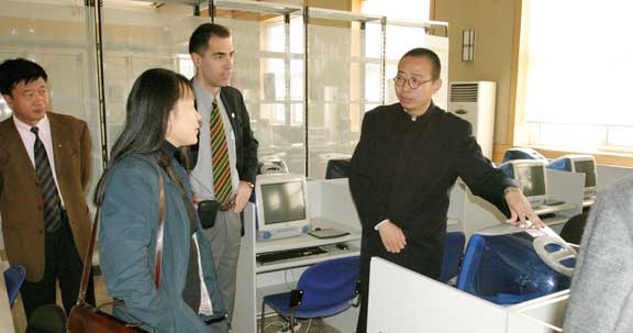院长在实验室接待了马意孚博士。在实验室马意孚博士兴致勃勃地参观了各个工作车间和学生自己设计的各种作品并与学生进行了交谈。