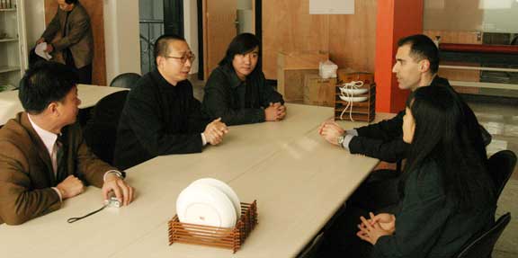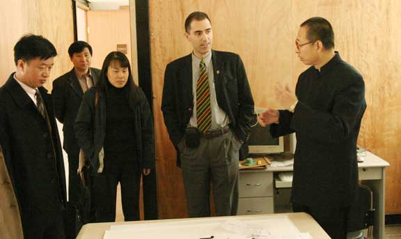院长与马意孚博士就我院新校区太阳能的利用进行了交谈。马意孚博士提出了许多建设性的建议,他认为对太阳能的利用应该把建筑的特点与太阳能的采集结合起来,并具有艺术的特征,在这个问题上四个方面是需要注意的,一是产品的高效,二是艺术设计,三是选用材料的成本,四是周围的环境,把这四个方面有机结合以找出其合理的结合点。