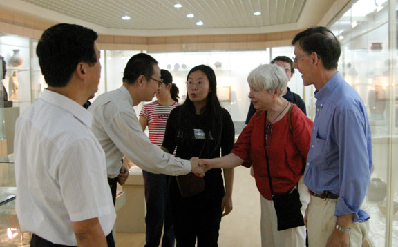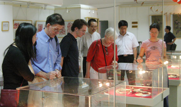 热情接待了来访客人并陪同参观了2025新澳门免费原料大全博物馆和孙长林艺术馆。民艺研究所赵屹老师就馆藏文物和艺术品为来访客人进行了详细的讲解,三位专家通过参观深入了解了博大精深的中国文化和民间艺术,并连声称赞,叹为观止。最后,