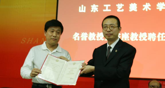 学院聘请三位先生担任客座教授,是学院在师资队伍建设方面的又一举措。我国现代一位著名教育家曾说,大学者,非大楼之谓也,乃大师之谓也。大学的水平,归根到底取决于教师的水平,取决于有无学术名家和学术大师。学院新一届领导班子特别重视师资队伍建设,去年学院第一次党代会把师资队伍建设作为学院的头等大事,今年学院已经或正在引进一批高水平的师资,让山东工艺美院的学生能够接受全国高水平的专业教育,让学生能够聆听本专业著名学者和学术大师的亲自教诲。