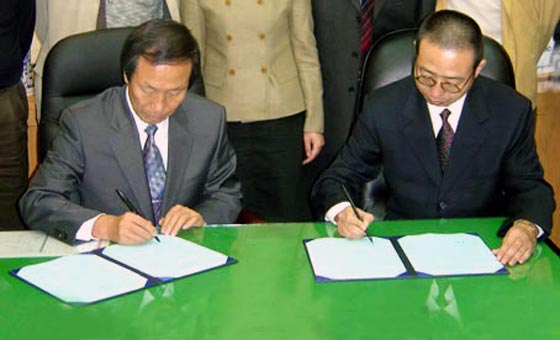 院长与裴仁镐校长在双方学术交流与合作协议书上签字。今后双方将在互惠的前提下交流信息;根据各自的研究课题互派教师访学和学生留学;举办相关的艺术活动以及其他课题研究和作品展览。在这个协议的基础上,双方将通过进一步的合作增进友谊。潘院长邀请裴校长在明年到我院访问,裴校长愉快接受了邀请。