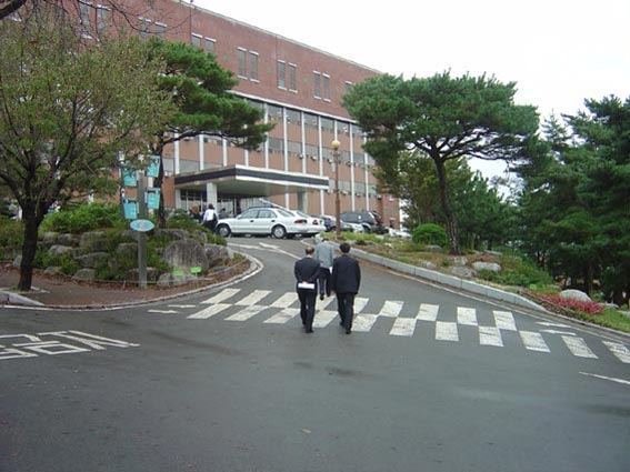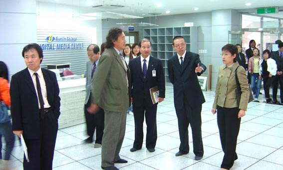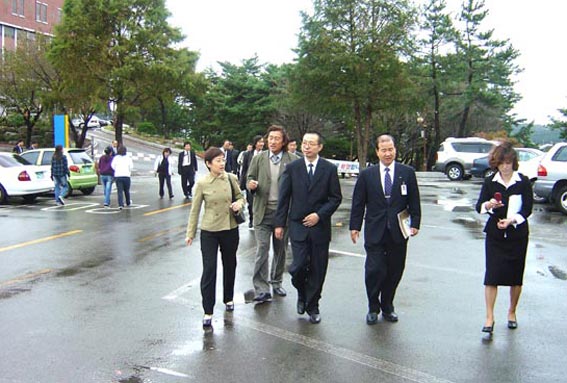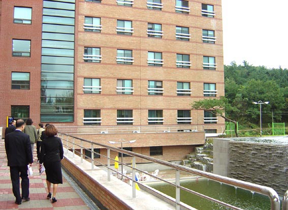 院长一行在田一平校长的陪同下参观了善邻大学的校区、部分教室、图书馆、公共信息中心、多媒体中心、学生与教工餐厅及学生公寓。善邻大学位于浦项市郊,三面环山,环境非常优美,学校规划设计非常有特色。