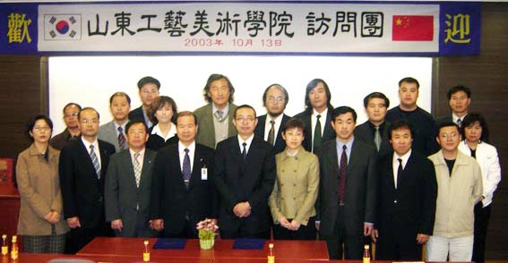 院长一行的到访致热情洋溢的欢迎辞。他说童年时代就熟知泰山,中韩两国素来友好,通过文化交流的方式结交,非常高兴。21世纪是设计的世纪,希望通过交流,使双方的设计水平更上一层楼,并以此促进两国的设计走向世界,这也是两校交流的目的。