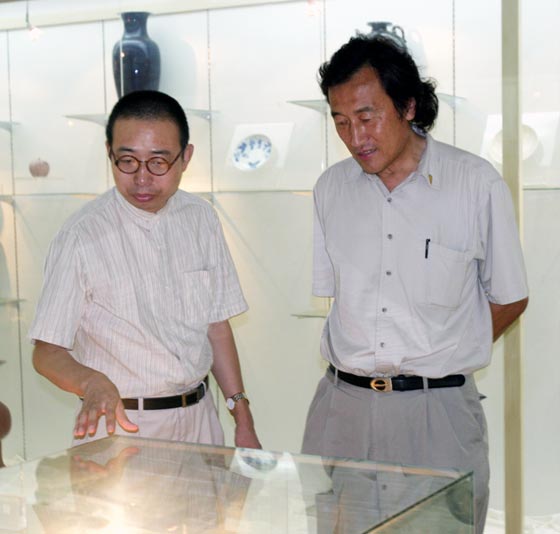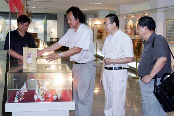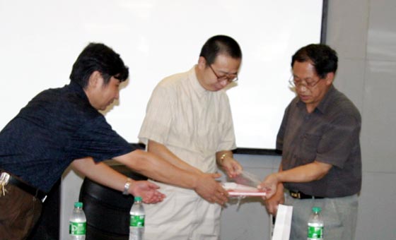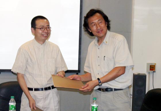 2003年8月10日下午,韩国大邱市国际交流联合会、艺术总会局长何传乾先生在中国东方国际文化交流促进会曾毅主席陪同下抵达我院。经院办安排,何传乾先生一行在教务处会议室与我院