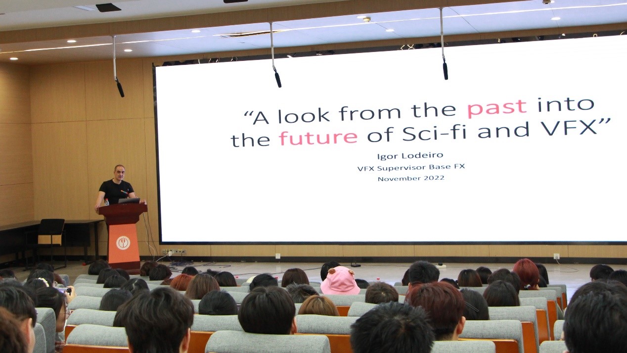 5月22日,数字艺术与传媒学院中外联合课程《影视特效1》外方授课启动,BASE FX (倍视传媒)视效总监伊戈尔·洛德罗(Igor Lodeiro Zamarreno)先生受邀为学生讲授“影视新领域:人工智能时代的创意媒介”的专题。课程中方教师宋鲁、冯秀彬、甄晶莹全程参与。