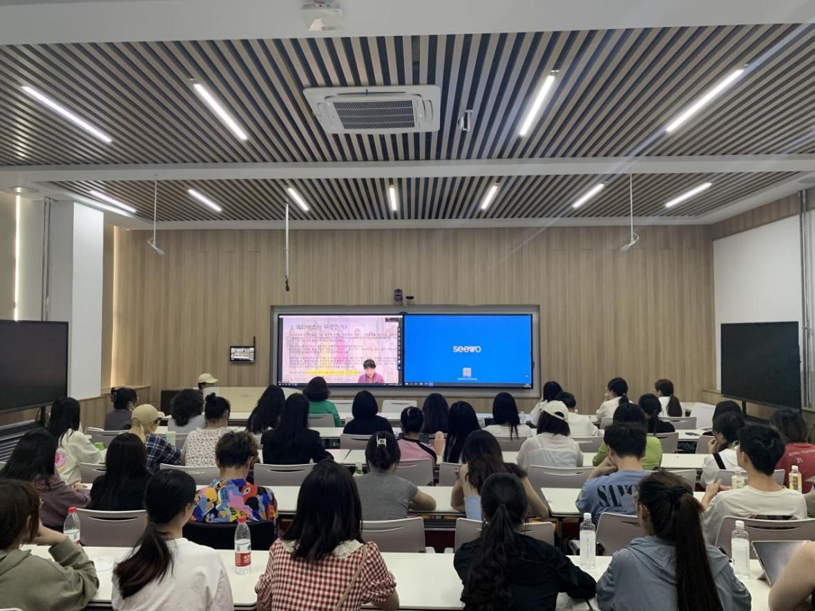 5月16日,服装学院《时装定制设计》、《服装设计程序与方法》中外联合课程外方授课启动,韩国世宗大学金淑辰教授通过线上方式为学生授课。邹渊、杨奇军、刘江南老师全程参与,刘瀛波老师担任翻译,高瑞彤老师辅助外方授课。