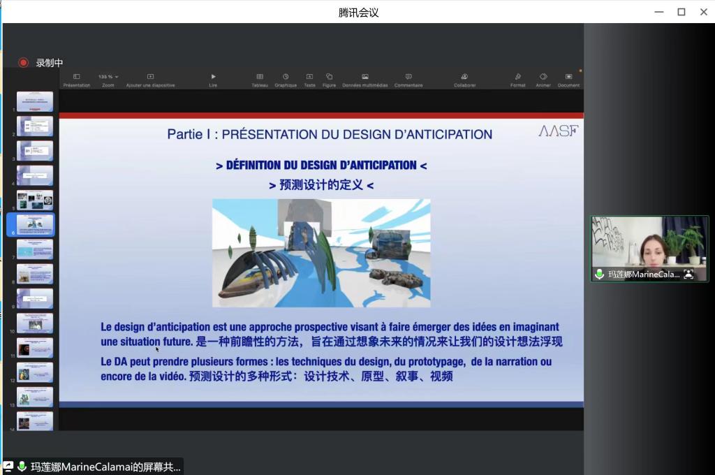 11月28日晚,法国巴黎高等视觉设计学院的讲师玛莲娜(Marine Calamai)为我校师生做了题为“面向未来的设计:预测设计”的线上讲座,我校近三百名同学参加。