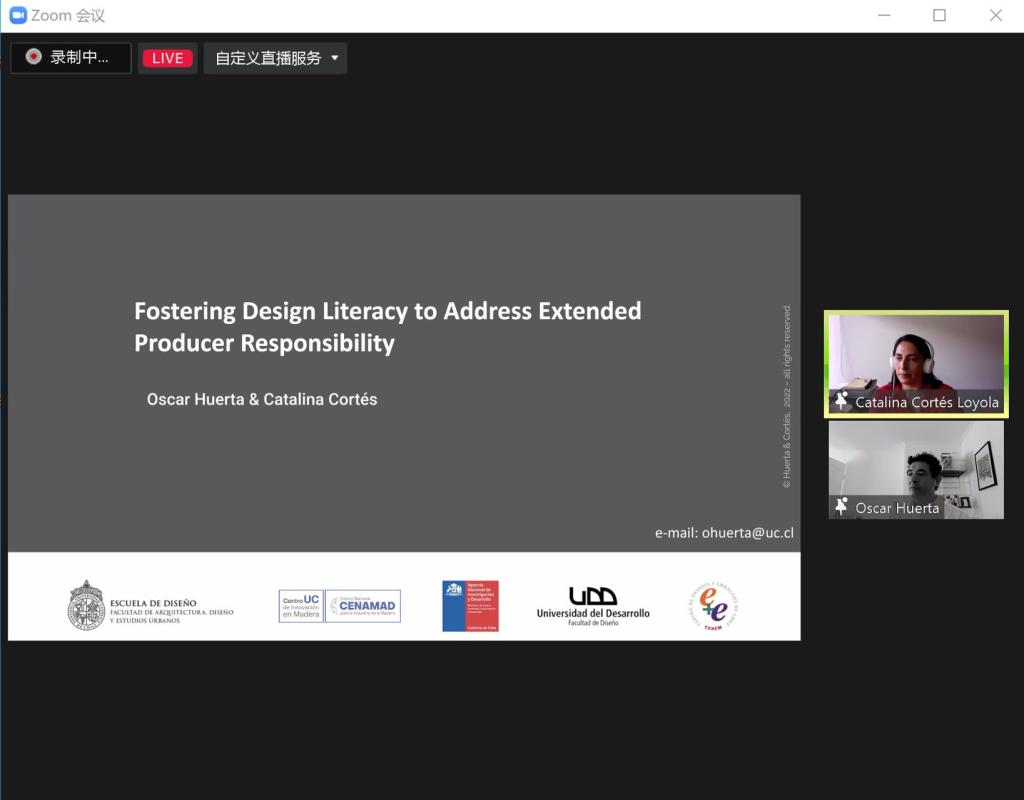 11月8日晚,国际交流合作处举办《提升制造者的社会责任感》(Fostering Design Literacy to Address Extended Producer Responsibility)学术讲座。本次讲座由智利天主教大学设计学院教授奥斯卡•修尔塔(Oscar Huerta)和智利发展大学讲师凯特琳娜•考特斯(Catalina Cortés)主讲,来自全球不同国家的听众参与此次讲座。
