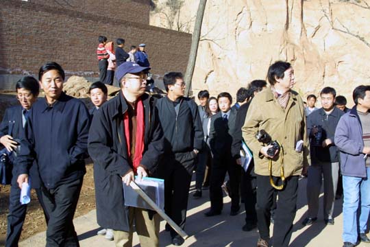 11月1日早8点,抢救工程采样队在颐景国际酒店召开了简短的会议,冯骥才先生在会上风趣地说,我们民间文化保护工作者平常都是带着一身泥在田间地头工作,今天在这样豪华的酒店开会,标志着民间文化开始登堂入室了。会后,采样队立即奔赴东赵乡后沟村,开始实地采样工作。通过深入家庭院落的调查采访,特别是走访年事已高的老人,并以文字纪录、录音、摄影、摄像等手段,掌握了第一手资料,为下一步进行深层次的文化发掘和整理打下了坚实的基础。当晚,采样队召开了小结会,专家组成员从各自的专业角度对当天的采样活动进行了总结。潘院长指出了这次考察的重要意义,他从本次考察的村落中总结出三点:其一,村落布局完整、封闭,寺庙、戏台、作坊、农耕均完备,是典型的独立的文化类型。其二,建筑风格古朴,有明、清两代的彩绘、砖石雕刻,门口有土地神龛,是管自家土地的神祇,院内有天地神龛,是保佑全家平安的,其雕刻风格各异,有典型的地方特色。其三,此村落为一般农民所居,张姓氏为本村大姓,可能当时为官吏、晋商或有居士高人,可谓神秘,有待进一步调研。晚11点,当日活动结束。