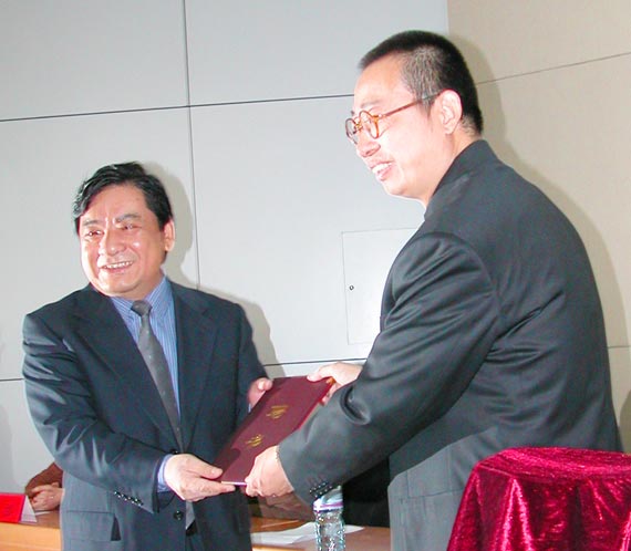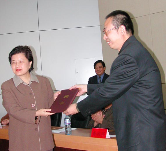 院长揭牌之后,潘院长向韩国强台长、祝丽华总编辑与陈甲振副台长颁发了客座教授聘书。