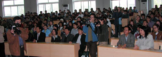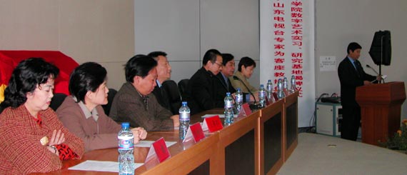 ,副院长王秀存、李新在主席台上就座。山东电视台制作部主任周向阳,总编室副主任高立民,总编室推介科科长安苑;山东工艺美院院务委员会委员、教务处长李友生,科研处副处长唐家路,数字艺术系副主任罗云平,数字艺术系书记韩兆友以及山东工艺美院数字艺术系师生200余人参加了仪式。
