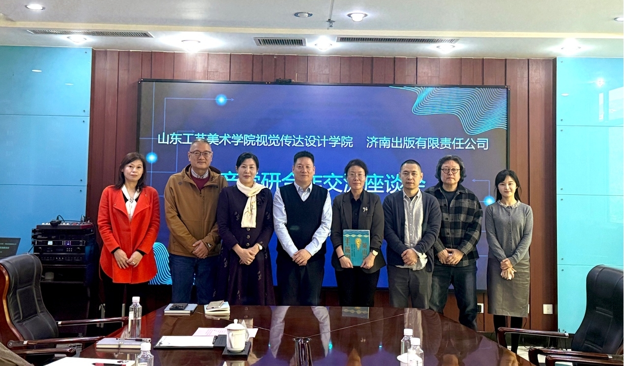 交流会伊始,双方分别介绍了单位概况与发展优势。济南出版社党委副书记朱孔宝介绍,济南出版社是集图书、期刊、电子音像、数字出版、广播电视、网络传播、教育培训、仓储物流及会展、会务、旅游研学、康养、酒店等多种业态于一体的综合性文化传媒、文化创意产业集团,资源丰富、平台广阔,与我省部分高校建立了多角度的合作关系;视觉传达设计学院院长王晓峰对学院学科建设、教科研等情况做了简要介绍。双方围绕产学研协同目标进行深入讨论。
