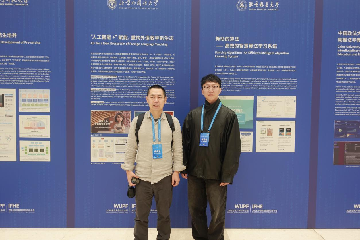 会议期间,王刚和芦佃杰还参观了中外高等教育成果展,深入了解全球高校在教育教学、科研创新等方面的最新成果。借助此次论坛的交流平台,我院教师进一步拓展了国际视野,也为人工智能时代背景下推动艺术与设计教育创新汲取了宝贵经验。
