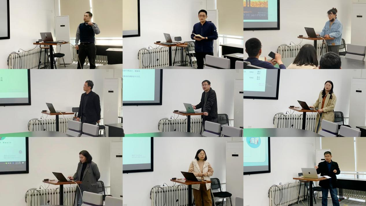 媒介设计与传播教研室、品牌设计与传播教研室、包装设计与工程教研室、书籍与插画教研室、智能交互教研室分别围绕教学模块基本教学单元、专业方向主干课程、教学目的与能力素养,重点针对数字教育发展的新战略,把握教学方法、设计学理、课程成效的变革和创新,把握教学资源、学情分析、材料工艺的多元建设,对课程中的重点难点及未来发展思路与教学内涵建设进行了汇报交流。