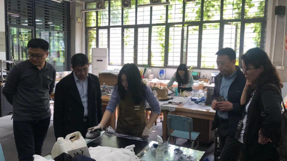视觉传达设计学院考察组参观了丝网、铜版、石版版画实验室、虚拟演播厅、木工实验室、3D打印实验室,金属工艺实验室、服装实验室、综合材料实验室等。四川美术学院强调教学、创造与实践相结合的实验教学方式,由课堂灌输式教学转变为实验启发式教学,以学生为主导,培养学生自主创新能力,教师引导、启发、鼓励学生将所学技能运用于创作实践中。艺术实验教学的目的是在实验教学中提升学生的素质和能力,从中体验到制作的成就感和劳动的乐趣,并形成良好的人格和素质。通过这次交流学习,一方面是搭建一个实验教学共享平台,充分合理的利用资源,更好的适应和满足实验教学需要,另一方面为学院实验室建设注入了新的思想、拓宽了思路,获取了十分宝贵的经验和建议。