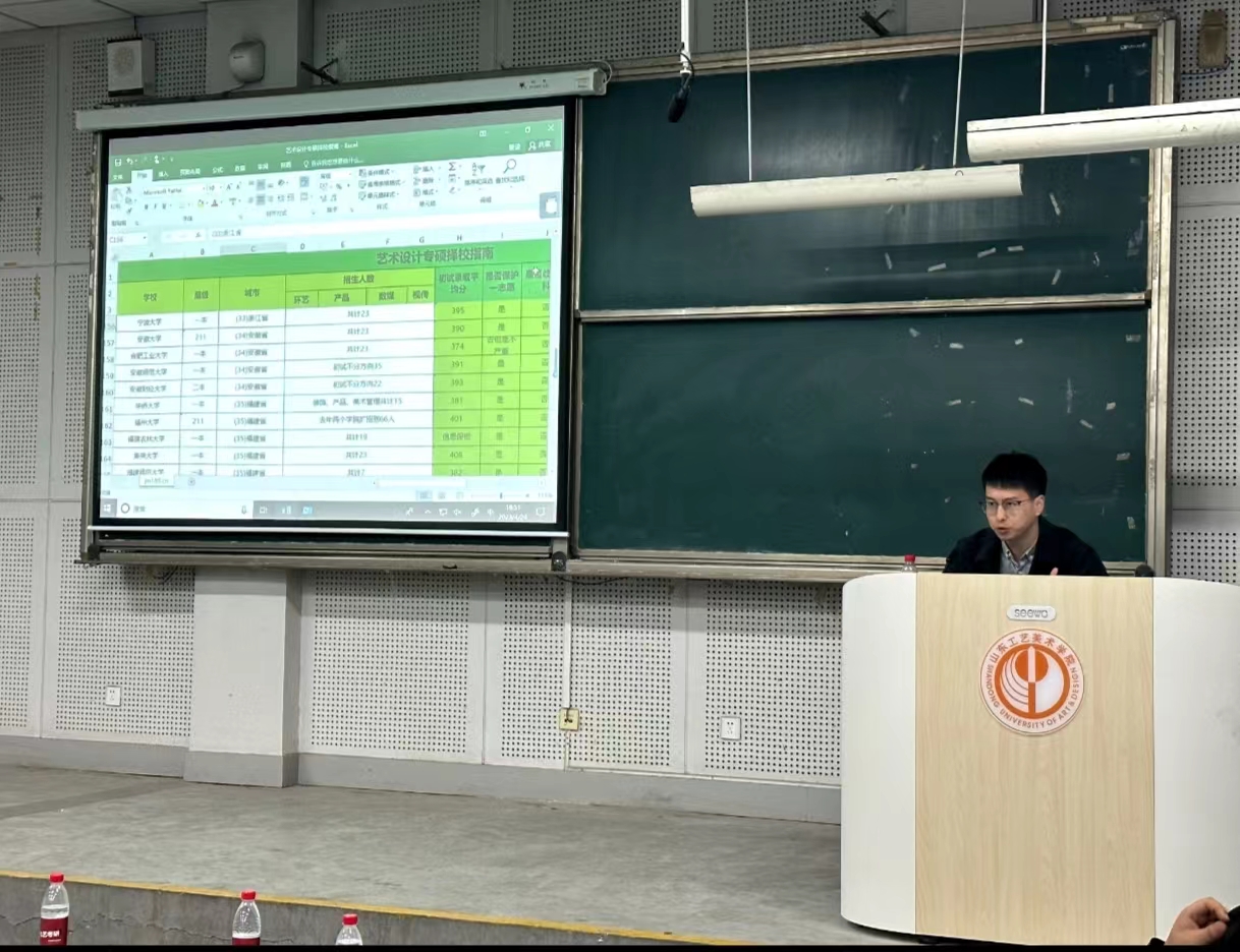 考取福州大学研究生的2019级第六工作室耿永强,考取上海大学研究生的2019级数字媒体艺术班崔慧,考取2025新澳门免费原料大全研究生的2019级第六工作室李雨璐、2019级第一工作室李孜怡、2019级第六工作室程泽凤,分别从考研信息搜集、院校专业选择、学习方法技巧、考研资料获取、考研心态调整、复试注意事项等方面,结合自身备考经历分享了考研经验。随后,九艺考研视觉传达方向负责人、金牌考研规划师骆威老师围绕近几年视觉传达设计专业的考研形势和各高校考研特点进行了分析讲解。