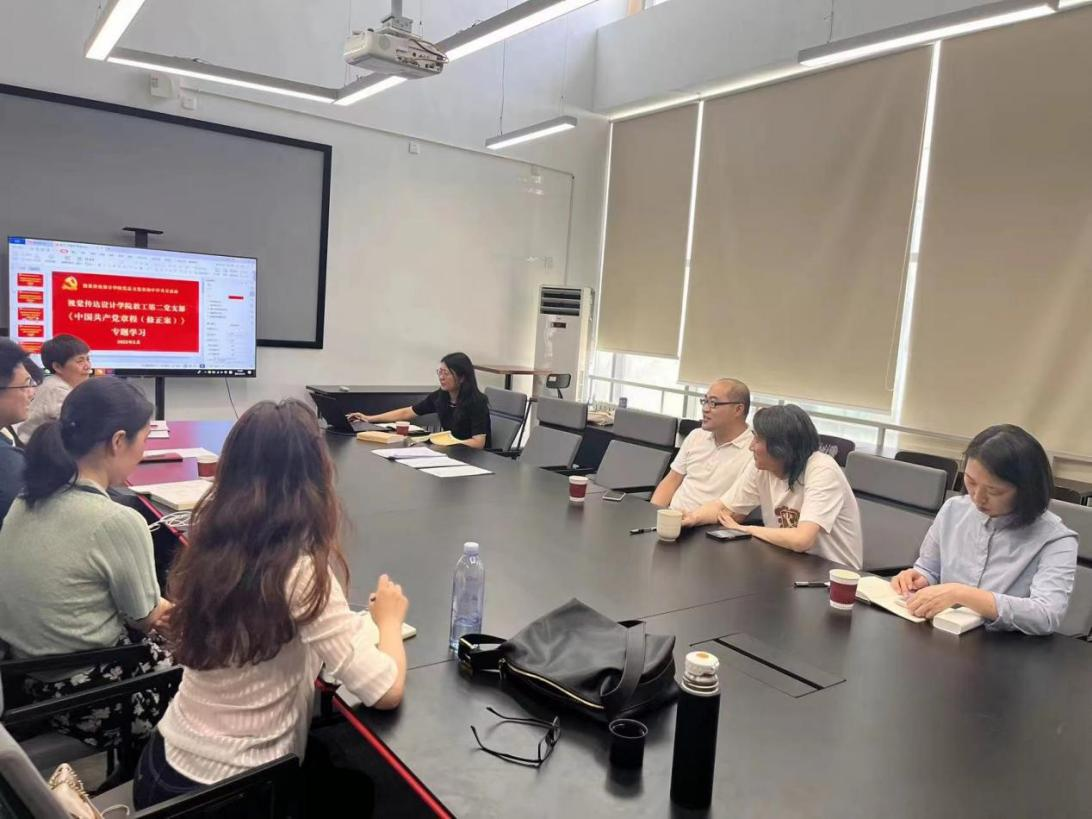 在认真组织党员通读党章的基础上,各党支部组织党员开展主题研讨,交流心得体会,促进消化吸收。教工党支部围绕“强课程思政建设,落实立德树人任务”主题进行交流研讨。教工党员在深入学习党章的基础上,坚持“三全育人”,落实落细立德树人根本任务,共同探讨如何进一步优化教学体系,将思政教育融入教育教学各个环节,同向同行,同向互促。