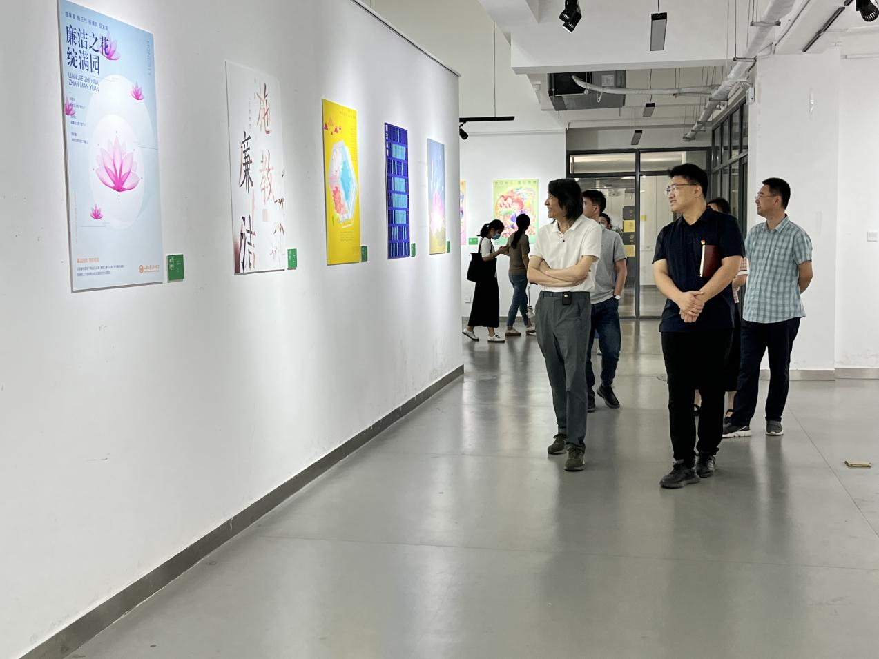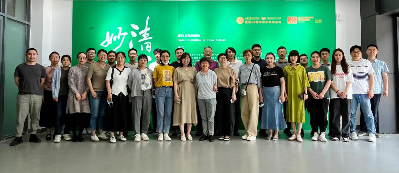 会议开始前,视觉传达设计学院全体教职工参观“清心妙语”廉洁文化主题海报展,接受廉洁教育。