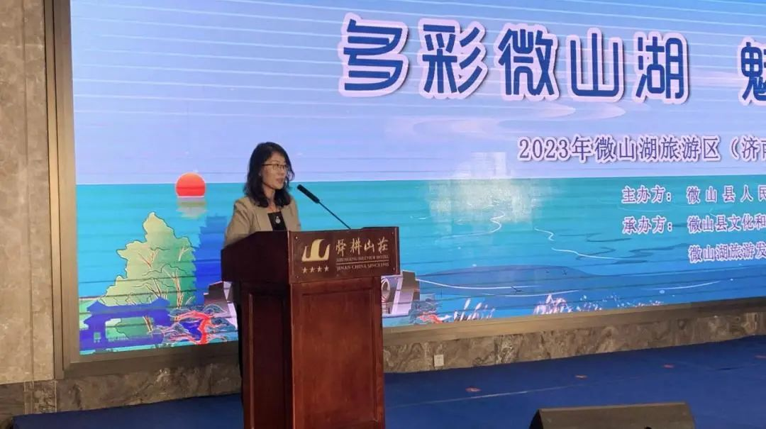 2023年6月3日上午,视觉传达设计学院与山东微山湖文旅发展集团框架合作签约活动在济南舜耕山庄举行。此次签约活动作为2023年微山湖旅游区(济南)文旅推介会重要议程,微山县委副书记、县长郭鑫、视觉传达设计学院院长王晓峰出席签约活动。