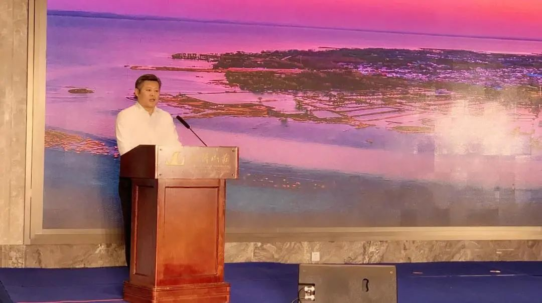 王晓峰作为高校代表致辞,简要介绍了视觉传达设计学院的学科建设、专业特色、社会服务等综合产学研情况。在推进微山湖文创开发工作中,双方充分发挥资源优势,为本次合作签约打下坚实基础。视觉传达设计学院始终秉持中华优秀传统文化“两创”转化路径,主动服务区域发展战略,用设计赋能乡土情怀,强化设计研学能力,增强文创设计转化能力,全面丰富微山湖文化旅游的人文内涵。
