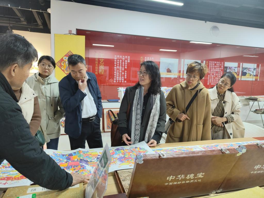 11月9日,考察团赴潍坊进行调研。在潍坊市文旅局相关负责人的陪同下,考察团先后参观了潍坊文化大观园、中国年画博物馆、天成风筝、潍坊市博物馆等相关单位。