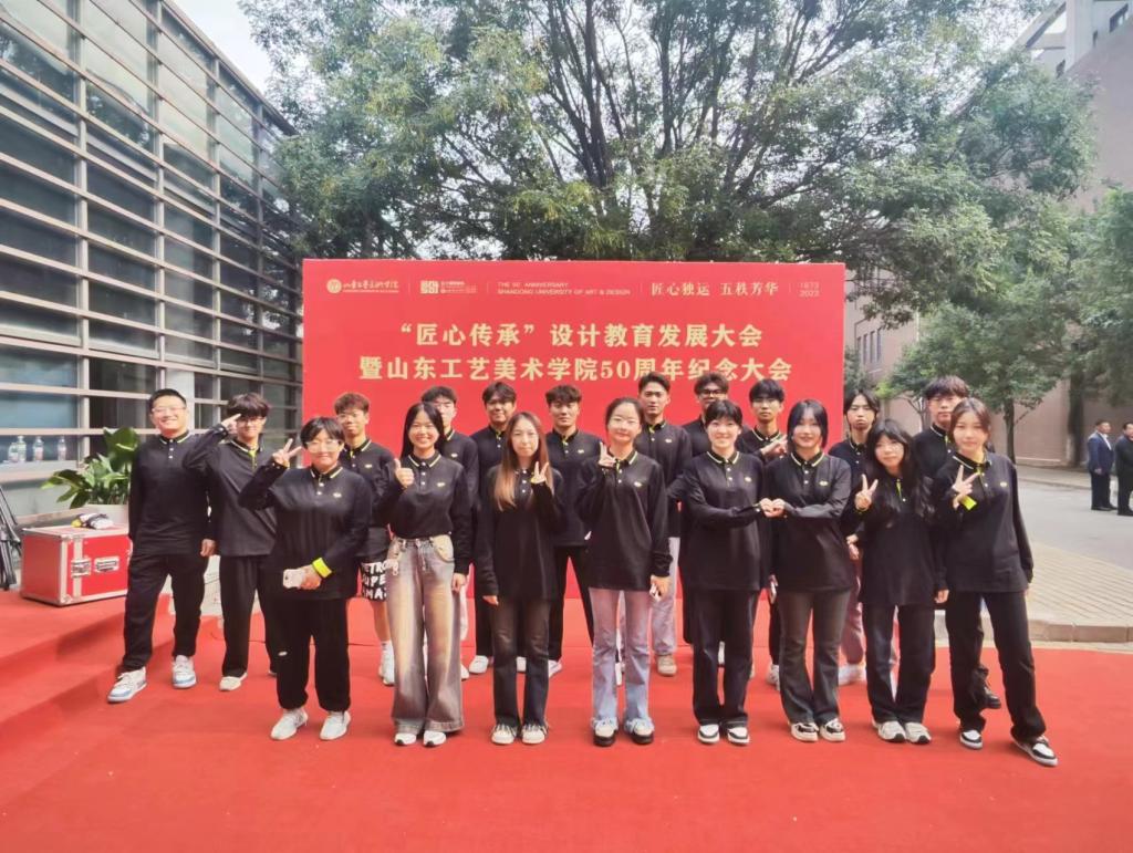 视觉传达设计学院通过多种方式,开展校史校情教育。组织全体新生集体参观博物馆、美术馆,引导学生树立爱校荣校感。有幸作为建校五十周年的见证者和参与者,视觉传达设计学院组织2023级新生积极参加志愿服务、展览筹备、校庆典礼、校庆演出等,了解学校发展历程与发展成就,发自内心将山工艺作为母校而感到自豪。