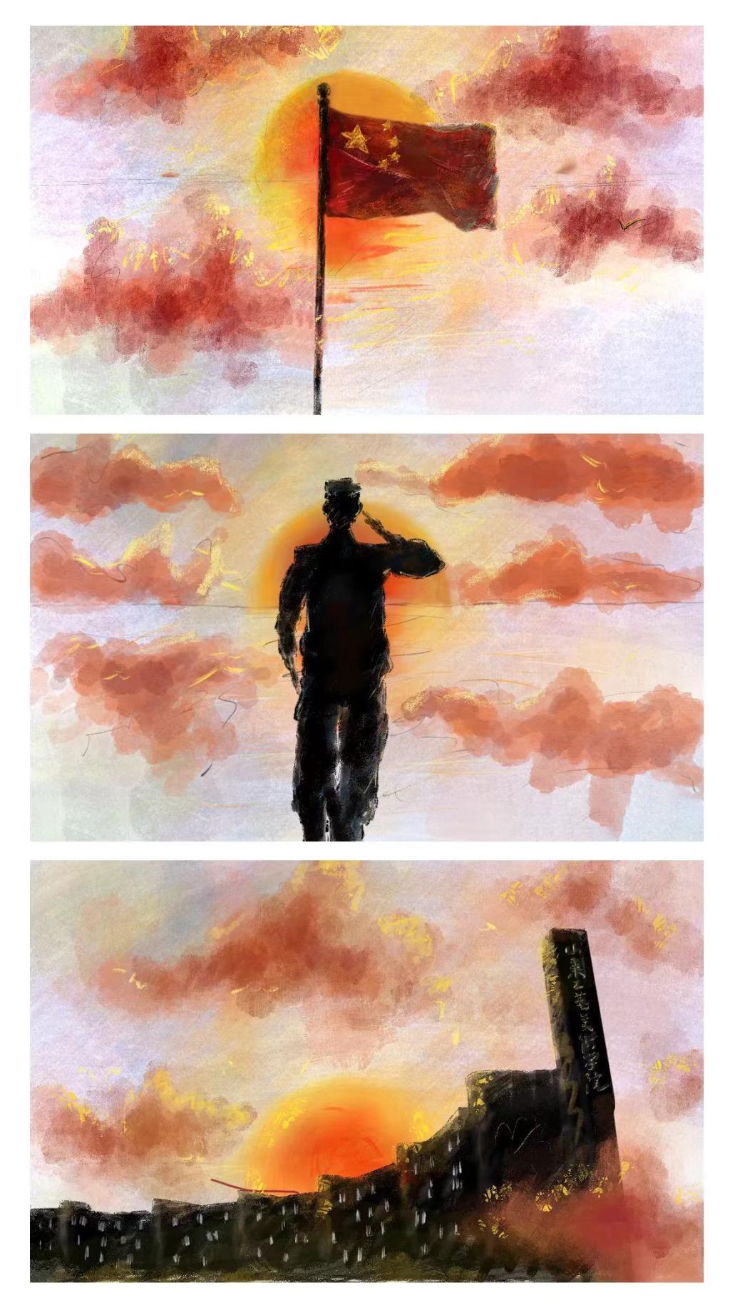 视觉传达设计学院组织2023级新生,在军训场上刻苦训练,以军人为榜样,心系国家、爱党爱国,无惧挑战、勇担重任,做有志气、有骨气的新时代青年。组织2023级新生开展“画”说军训主题创作,激发爱国热情,展示视觉学子昂扬向上的精神风貌。召开主题班会,学习《中华人民共和国爱国主义教育法》,观看教育影片,加强学生爱国主义教育,引导青年学生为全面建设社会主义现代化国家、全面推进中华民族伟大复兴而奋斗。