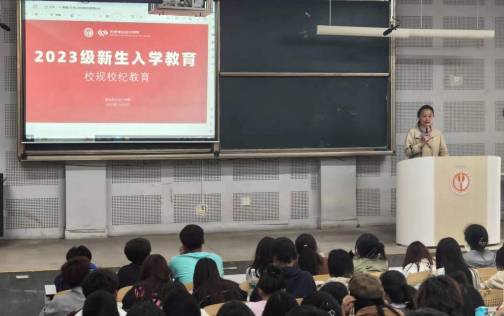 为维护学校正常的教育教学秩序,明确学生权利与义务,促进学生全面发展,视觉传达设计学院教学秘书王宗艳老师,结合学生学业方面的日常注意事项,为2023级新生详细讲解学校学分制选课管理办法、学籍管理办法等内容,强调学生一定增强自主学习意识和自我管理能力。