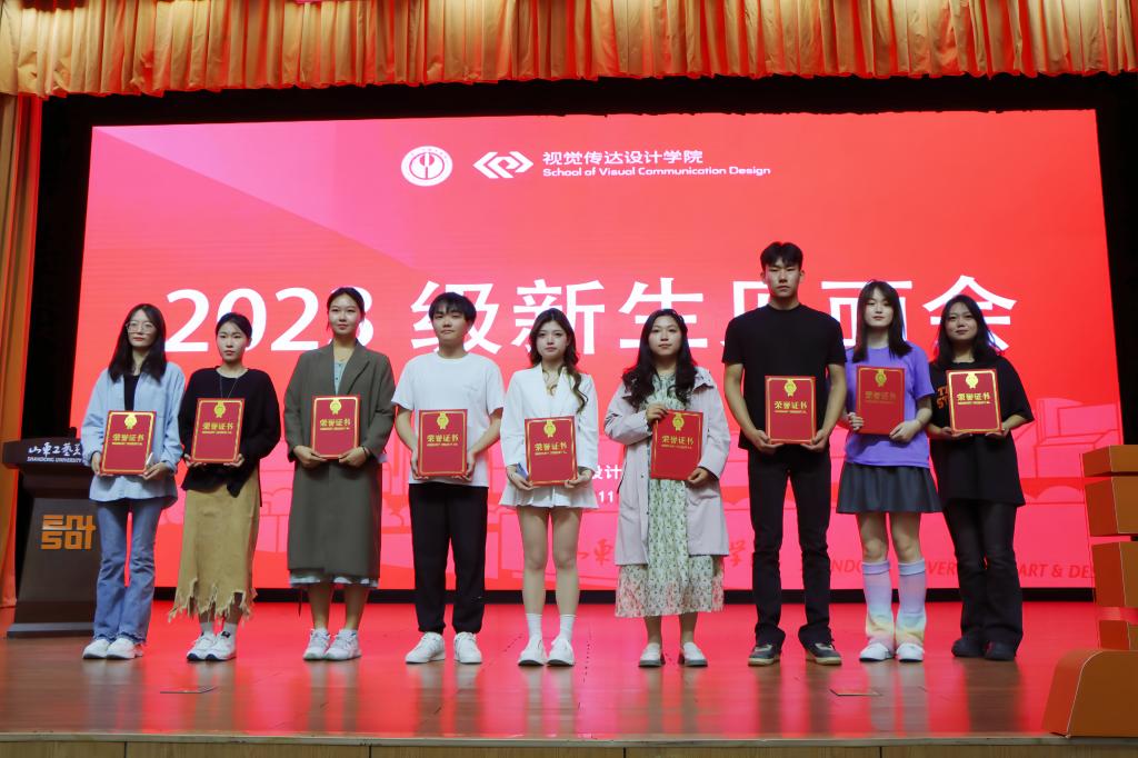 院长王晓峰寄语2023级全体新生,树立远大理想,践行设计使命,拓宽文化视野,练就扎实本领,学会学习、思考与创新,不断在实践中增长才干、报效祖国。党总支书记希望2023级全体新生,坚定理想信念、严守纪律规矩,尽快适应环境、制定学业规划,强化时间观念、学会自主学习,远离不良嗜好、培养健康体魄,确立人生目标、勇担青春责任。教研室教师代表勉励2023全体新生,修身立德、心怀感恩,仰望星空、脚踏实地,踏踏实实做人、认认真真做事,关注社会现实,把握时代脉搏,用奔跑与奋斗迎接美好未来。见面会为2023级各班专业导师颁发聘任证书,加强学业引导。为高年级代理班主任颁发荣誉证书,加强朋辈互助。播放学校宣传片、视觉传达设计学院宣传片、视觉校友访谈记录片,为2023全体级新生发放《视觉人物》校友名录,增强新生集体感、归属感、荣誉感、责任感。