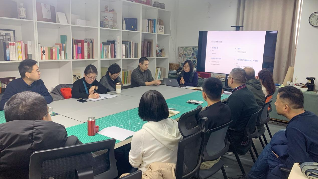 各教研室综合汇报了教学整体情况,对教学模块、教学质量、教学动态、教研科研、产教融合情况进行了综合分析和自评,对下学期教研室工作管理制定相应教学计划,并针对专业主线课程进行了说课,齐立稳老师《设计心理学》、姜晓慧老师《衍生品设计》、周美丽老师《包装结构设计》、王颖惠《动态图像设计》、王刚老师《文字设计》,以实践课程改革和教学动力,各教研室不断推动设计教学提质。关注学生学习动态,注重教师教学活力,把教学情境与课堂场域进行专业形塑,发挥学生实践的主动意识,提升课程设计的教学活力。