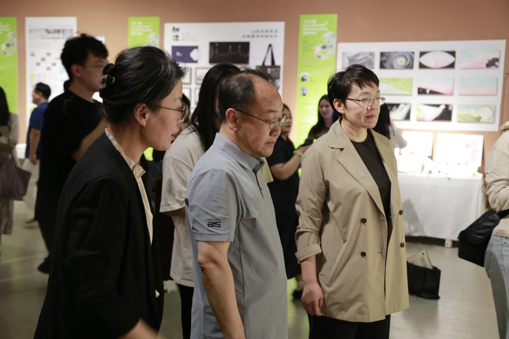 校领导在学院作品展区频频驻足,听取了学院领导、导师和作者的汇报与讲解。领导们首先对现场展出作品和学院研究生培养质量给予了充分肯定;并指出,专业硕士培养要更加注重校企合作,强调专业设计与市场资源的联合,琳琅满目的文创衍生品要推向市场,面向大众,走向社会,为学院接下来的研究生培养方案调整点明了方向。