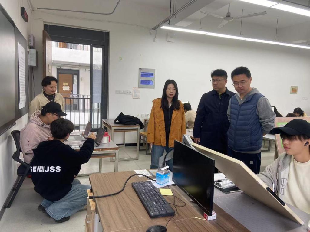 为深入贯彻落实迎评促建工作部署,进一步规范教学工作,切实提高课堂教学质量,10月28日、31日,视觉传达设计学院教学督导组开展了全面而深入的教学质量专项督导活动。党总支书记林波,副院长张培源,党总支副书记张洁在学院辅导员高畅、裴雨晨,教学秘书王宗艳陪同下,对学院教学工作进行现场督察和指导,并对学院近期课堂教学准备及组织工作给予了充分肯定。
