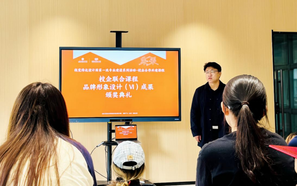 活动开始由副院长张培源和董事长赵鑫作了开场致辞。张培源表示,《品牌形象设计(VI)》作为校企联合课程,是视觉传达设计学院教学改革的一部分,这门课程旨在通过与企业合作,为学生提供真实的项目案例和实践机会,使学生能够更好地了解市场需求和行业趋势,提高专业技能和综合素质。董事长赵鑫表达了对校企合作这种模式成效的肯定,同时介绍了公司的发展和项目情况,希望开展下一轮合作,期待学生们做出更好的设计作品。